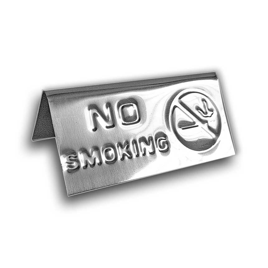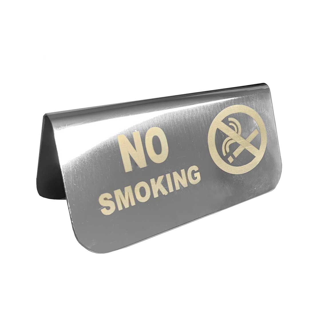 Η γραμματοσειρά και τα χαρακτηριστικά του σήματος είναι ευδιάκριτα, ενώ το χρώμα του ανοξείδωτου υλικού ενισχύει την ορατότητα του μηνύματος, κάνοντάς το ευανάγνωστο σε κάθε γωνία του τραπεζιού ή του χώρου. Ανεξάρτητα από το στιλ ή το ύφος του καταστήματος, το ταμπελάκι αυτό προσφέρει μία διακριτική, αλλά ισχυρή παρουσία που δείχνει στους πελάτες ότι η επιχείρησή σας λαμβάνει σοβαρά υπόψη την πολιτική μη καπνίσματος.