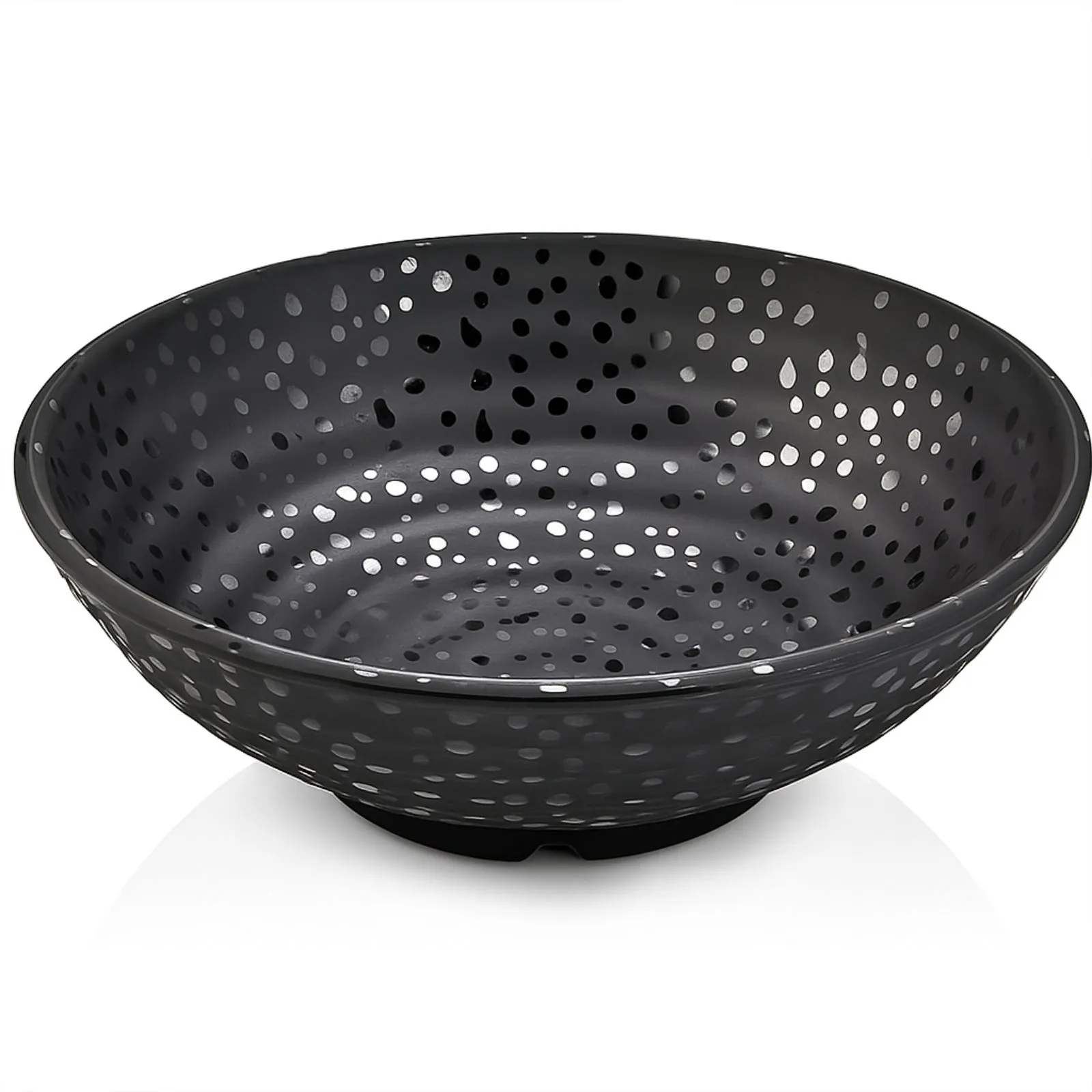 Αναδείξτε το τραπέζι σας με αυτό το εντυπωσιακό μπωλ μελαμίνης σε κομψό μαύρο χρώμα και μοντέρνο πουά σχέδιο. Με διαστάσεις 24cm διάμετρο και 8cm ύψος, είναι ιδανικό για μεγαλύτερες ποσότητες σαλάτας, φρούτων, σνακ ή ζυμαρικών, καλύπτοντας τις ανάγκες ενός οικογενειακού ή επαγγελματικού γεύματος.